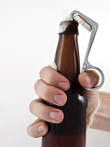 Por aqui a gente curte bastante as variações e novidades no mundo dos abridores de cerveja. Já vimos até case de iPhone com esta funcionalidade extra. Mas o que enche os olhos é a criatividade para inovar antigas invenções para deixar nossas vidas mais práticas. No caso do abridor de garrafas Kebo o grande lance é fazer você abrir a sua cerveja “like a boss”. Isto porque com ele você só vai precisar de uma mão. A outra fica para o amendoim, certo!?